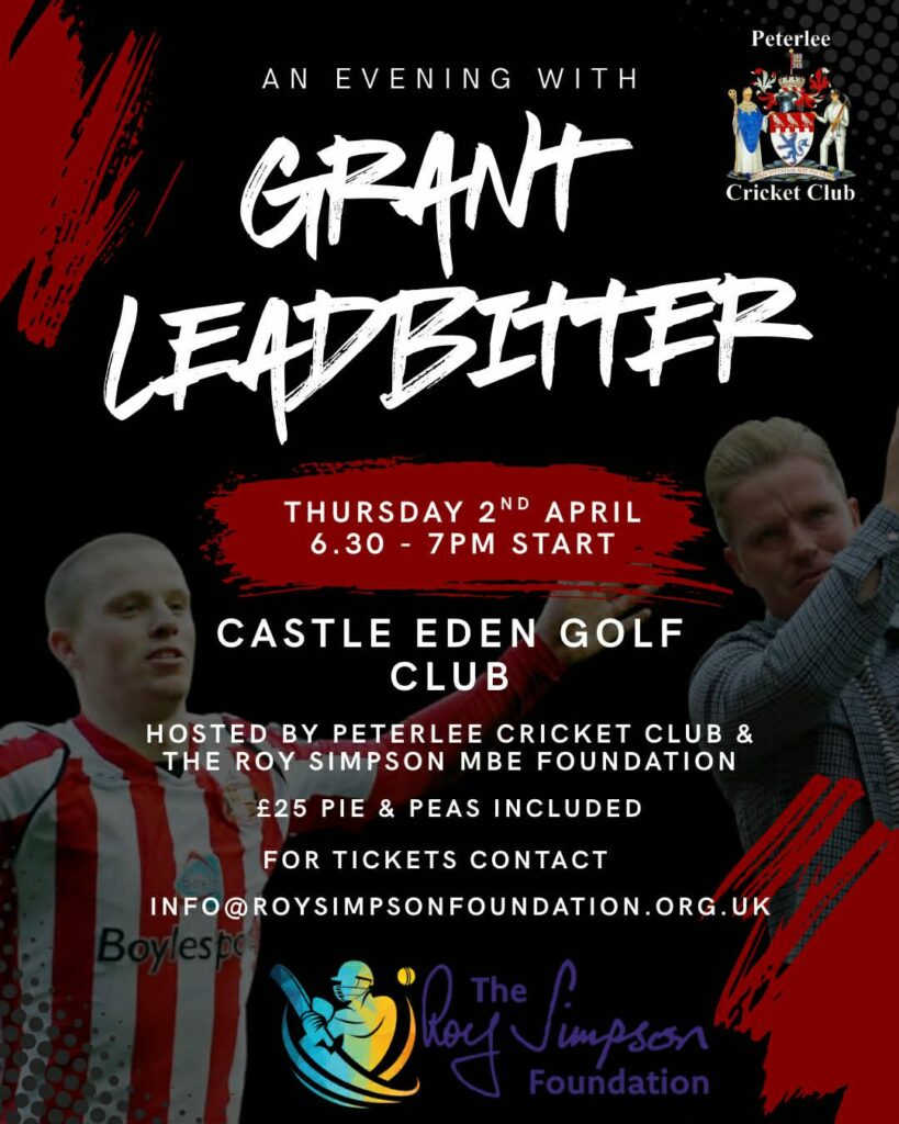 Former Sunderland skipper Grant Leadbitter is to the guest speaker for a charity dinner being hosted by the Foundation in partnership with Peterlee Cricket Club.